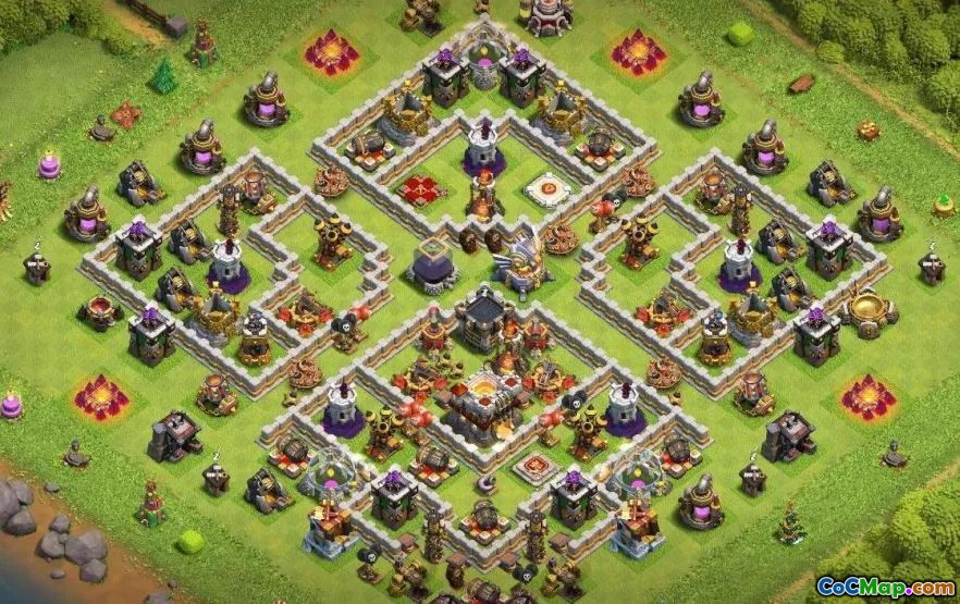 Clash of Clash Game具有各种用于不同目的的基本布局,尤其是针对市政厅11的玩家。这些布局可以分为三种主要类型:家庭乡村基地,战争基地和奖杯基地。每个布局都具有唯一的功能;家乡布局通常集中在资源保护和针对突袭的有效防御上,而战争基础则优先安排防御措施,以应对氏族战争期间的特定攻击策略。此外,精心制作奖杯基地是为了最大程度地提高球员可以赚取的奖杯数量,从而最大程度地减少了被攻击者超越的机会。