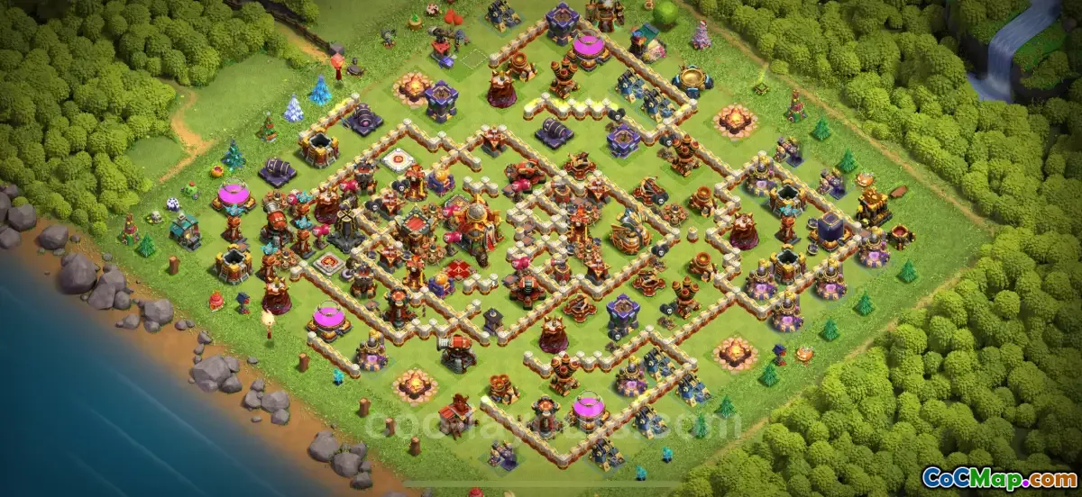 The Trophy Base for Town Hall 16 not only emphasizes robust defenses but also strategically places defenses and traps to deter attackers. This layout is optimized for players aiming to maintain or increase their trophy count, ensuring that opponents face a formidable challenge when trying to raid. The provided link leads to a successful base design that has been tested and proven effective within the competitive scene of Clash of Clans in 2025.