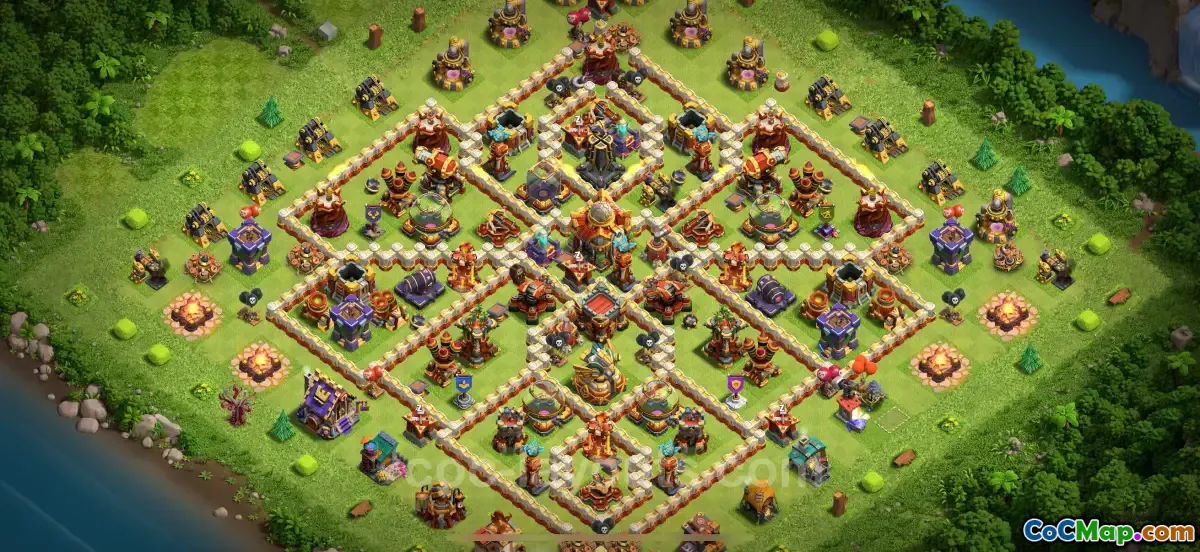 This expertly designed Town Hall 16 hybrid base layout offers robust defense against 2-star attack strategies, making it ideal for clans seeking reliable protection in Clash of Clans 2025. Its unique design combines strong core defenses with well-positioned traps and walls that disrupt enemy troop paths and minimize damage.