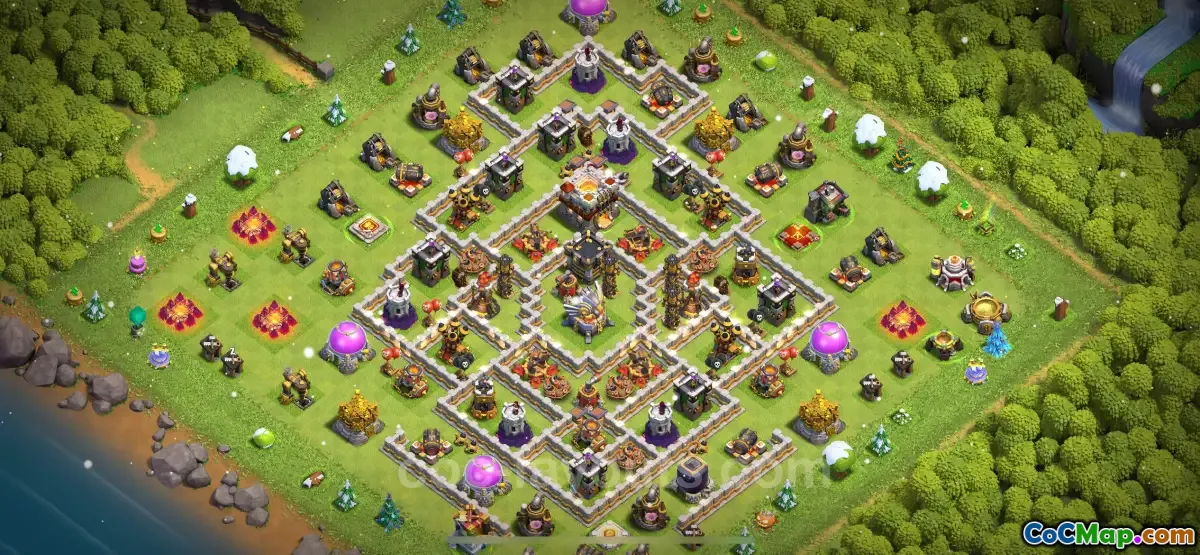 One of the standout features of this TH11 base is its anti-air design, which aims to thwart not only Electro Dragons but various air troops that players may utilize in their attacks. By cleverly organizing towers and defenses that target aerial units, this layout seeks to create a stronghold that remains resilient against common strategies employed by attackers at this level.