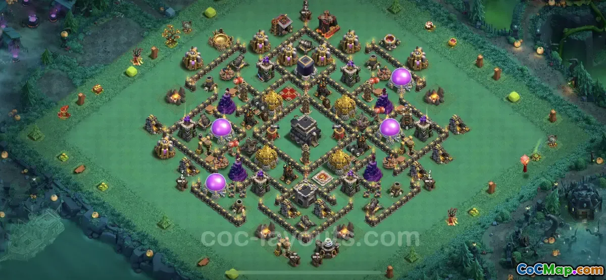 One of the key features of this Town Hall 9 base is its strategic placement of defenses to deter dragons and other air troops. Players can benefit from careful positioning of air defense structures, which are crucial in minimizing damage from aerial assaults. The design also incorporates defensive buildings that can target both air and ground units, making it versatile against different types of attackers. By leveraging the natural layout, the base can effectively protect treasures while forcing attackers into unfavorable positions.