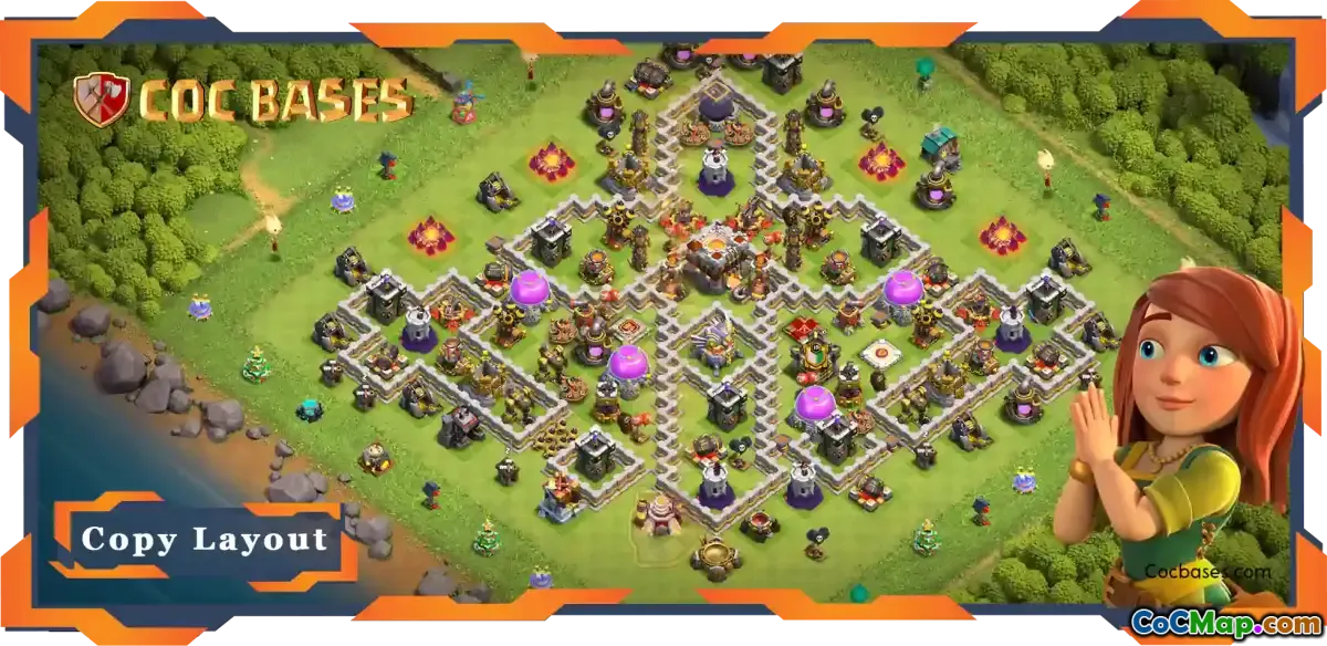 The layout incorporates various design strategies that confuse and mislead attackers, often leading them to make mistakes while attempting to raid. By strategically placing traps and utilizing defensive structures, this base layout aims to maximize the chances of thwarting enemy plans. This could include unexpected defenses, illusory bait for troops, or clever resource placements that trick opponents into thinking they can easily loot the base, only to be thwarted by the defenses.