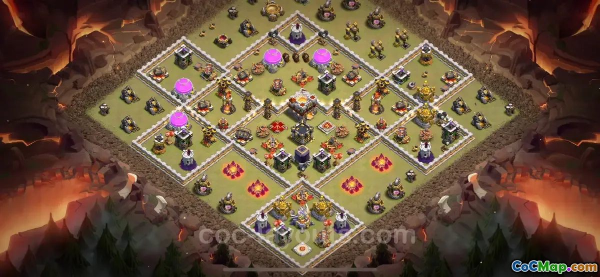 The primary focus of this TH11 war base is its anti-air defenses, making it particularly effective in dealing with air assaults, a common tactic among enemy attackers. By incorporating strong air defense structures and strategic placement, the base minimizes the effectiveness of Electro Dragons, which are frequently used in attacks. The arrangement of buildings and traps adds an additional layer of complexity, forcing opponents to rethink their approach and adapt their strategies in order to break through the defenses.