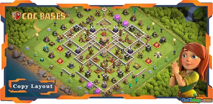 In Clash of Clans, the design of a base plays a crucial role in defending against enemy attacks. One of the top anti two-star base layouts for Town Hall level 11 (TH11) is structured to provide a robust defense against various attack strategies. This particular layout is referred to as an 'Anti Everything Layout' which indicates its capacity to repel different kinds of assaults effectively.