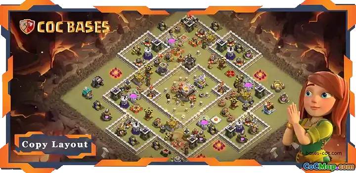 In summary, the TH11 base with an anti-2 stars focus is designed for those looking to excel in both war and CWL scenarios. Its comprehensive defenses, thoughtful resource protection, and strategic placement of traps and structures combine to create a formidable stronghold that can withstand a variety of attacks. Players utilizing this layout are likely to experience greater success in defending their trophies and resources while participating in competitive Clash of Clans events.