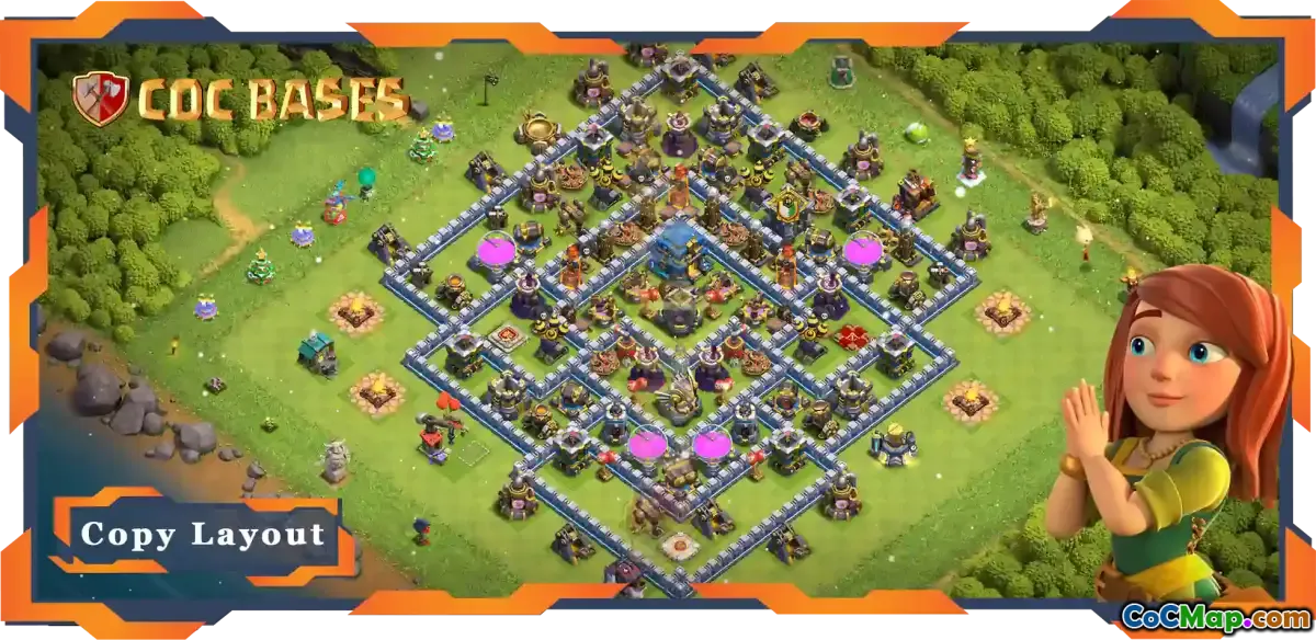 The hybrid layout is tailored for players who want to balance farming with protective measures. It allows players to gather resources effectively while not exposing themselves too much to the risk of heavy losses during attacks. This careful configuration ensures that even with an aggressive farming approach, players can maintain a robust defense that safeguards their resources.