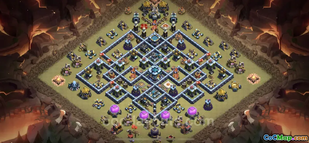 A top War TH13 base is one that strategically places defensive buildings, traps, and walls to thwart enemy attacks. These bases often feature centralized Town Halls, making it difficult for attackers to secure a three-star victory. Effective use of defensive structures, such as X-Bows, Inferno Towers, and scattershots, paired with clever trap placements can create an intimidating defense that protects players' clan trophies and helps in Clan War success. Additionally, successful bases might also consider troop pathing, ensuring that attackers cannot easily reach their objective by creating complex routes to the Town Hall.