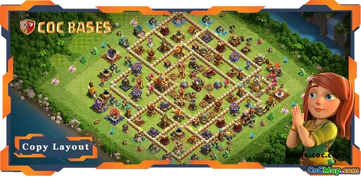 This top TH16 base layout is specifically crafted to resist complex attack strategies and minimize the risk of 3-star completions. Its well-balanced design incorporates strong defensive structures, optimized trap placements, and strategic placement of Clan Castle and Queen defenses to create a formidable barrier against attackers.