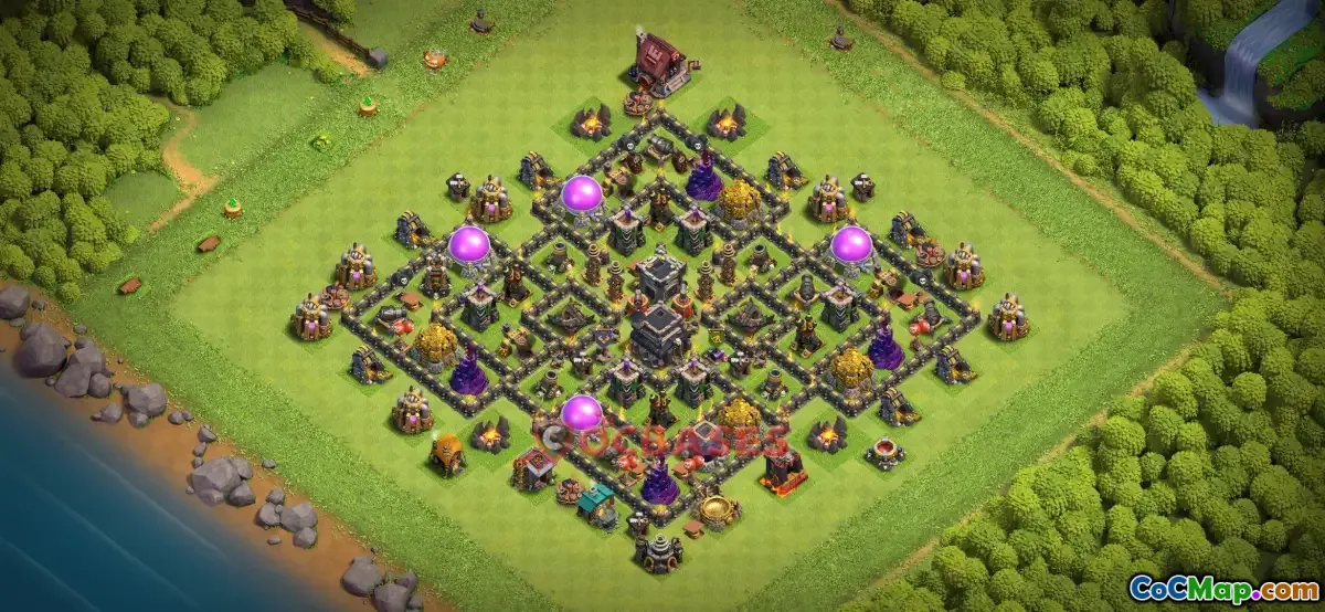The Town Hall 9 farming base in Clash of Clans is specially designed to maximize resource protection and efficient farming. This type of base layout focuses on safeguarding resource storages from enemy attacks while allowing players to efficiently gather and gather resources during active gameplay. Typically, this base layout features well-protected resource storages positioned centrally, with defensive structures like cannons, archer towers, and mortars strategically placed around them to defend against enemy raids. The overall design aims to prevent attackers from easily stealing resources, making it ideal for farmers who want to sustain their resource stockpiles over time.